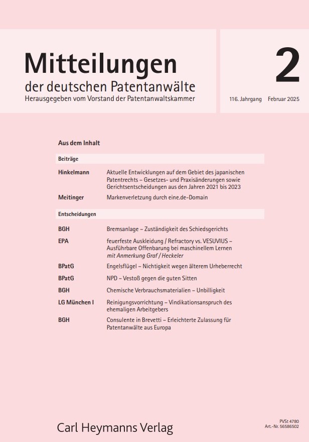 In der Dezember-Ausgabe des Jahres 2024 des Journal of Intellectual Property Law weist Dr. Meitinger auf eine Gesetzeslücke bei der Bestimmung des Stands der Technik hin, die insbesondere durch moderne Technologien ausgenutzt werden könnte.